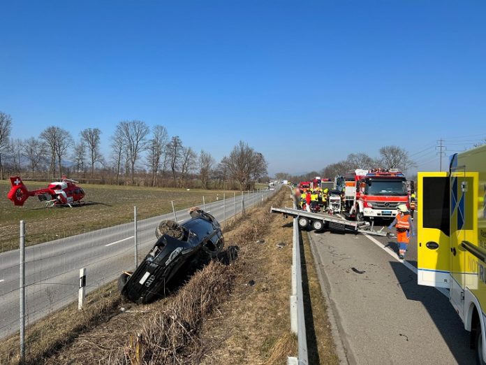 Diepoldsau – Am Donnerstagnachmittag (03.03.2022), kurz vor 14:20 Uhr, ist es auf der Autobahn A13 zwischen Widnau und Kriessern zu einem Verkehrsunfall zwischen einem Auto mit Anhänger und einem Lastwagen gekommen. Dabei wurde der 68-jährige Fahrer des Personenwagens unbestimmt verletzt. Er wurde durch den Rettungsdienst betreut und anschliessend von der Rega ins Spital geflogen.