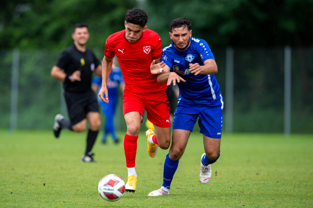 Die Liechtensteiner spielten stark und hatten den Gegner im Gründenmoos recht gut im Griff. Die Führung nach 37 Minuten durch Adrian Hoti geht dem Spielverlauf entsprechend in Ordnung. Doch dem ebenfalls stark auftretenden Heimteam gelingt noch vor Seitenwechsel durch Preniqi der Ausgleich zum 1:1.