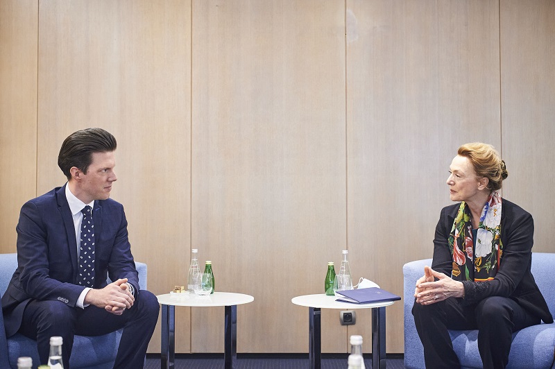 Bild: Kulturminister Manuel Frick beim Arbeitsgespräch mit Marija Pejčinović Burić, Generalsekretärin des Europarats