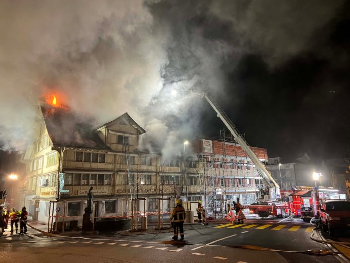 In der Nacht auf Dienstag (12.04.2022), kurz vor 01:00 Uhr, ist der kantonalen Notrufzentrale der Kantonspolizei St.Gallen ein Brand am Dorfplatz gemeldet worden. Ein Grossaufgebot von Rettungskräften wurde aufgeboten. Eine Person wurde nach rund 90 Minuten tot in einer Wohnung aufgefunden. Zehn Personen konnten fünf Wohnungen unverletzt verlassen. Der Sachschaden beträgt mehrere hunderttausend Franken. Die Brandursache ist nicht bekannt. Zwei Liegenschaften sind nicht mehr bewohnbar.