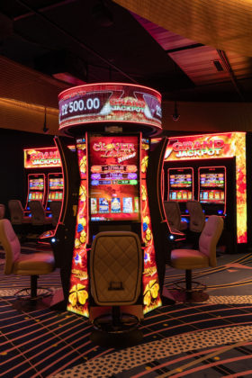 Zwei Etagen: auf der unteren Etage befindet sich das Live Game mit 12 Tischen (rauchfrei). Auf der oberen Etage stehen 180 Spielautomaten (hier befindet sich der Raucherbereich).