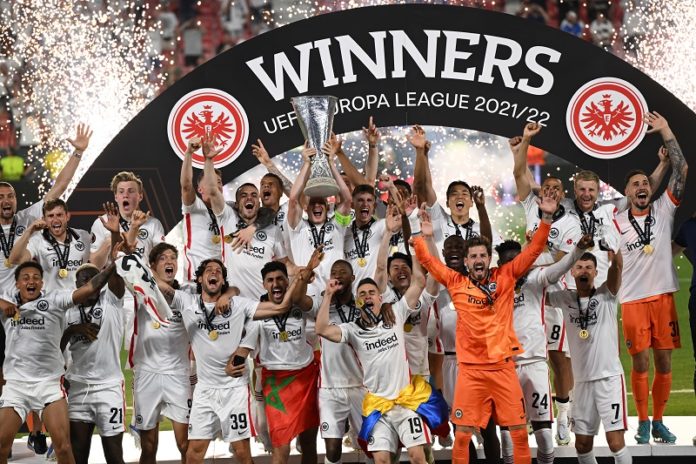 Eintracht Frankfurt, Sieger im Finale der Europa League gegen Glasgow Rangers nach Penaltyschiessen in Sevilla. Foto: Picture Alliance, Frankfurt/Main