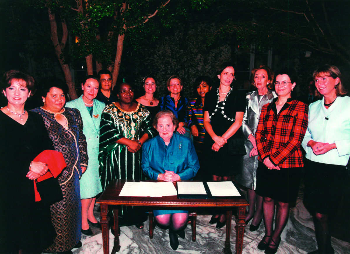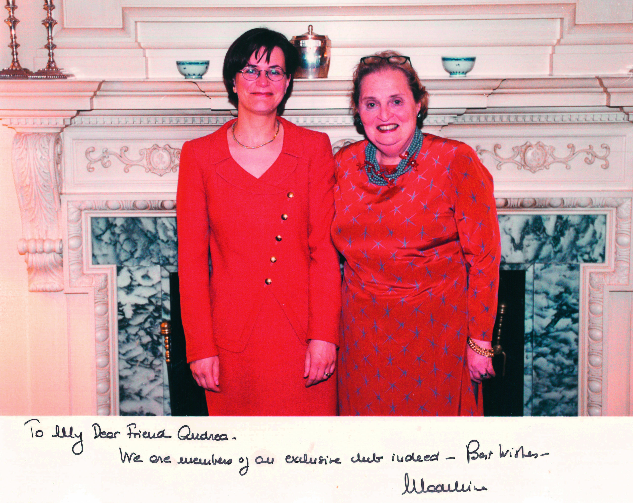 Am 5. Dezember 1996 nominierte Präsident Bill Clinton Madeleine K. Albright zur ersten Aussenministerin der Vereinigten Staaten. Die Aussenministerin handelte wieder getreu ihrem Prinzip: «Nach meiner Ernennung zur Aussenministerin gründete ich mit meinen neuen Amtskolleginnen den nächsten Club, der immerhin schon doppelt so gross war. Wir firmierten unter ‹die fürchterlichen Vierzehn› und verabredeten, jederzeit füreinander erreichbar zu sein. Wenn sich dann Aussenminister grosser Länder bei mir darüber beklagten, dass sie nicht so leicht zu mir durchdrangen wie die Aussenministerin von Barbados oder Liechtenstein, antwortete ich, sie sollten einfach einer Frau ihren Platz überlassen. Danach beschwerte sich niemand mehr.»