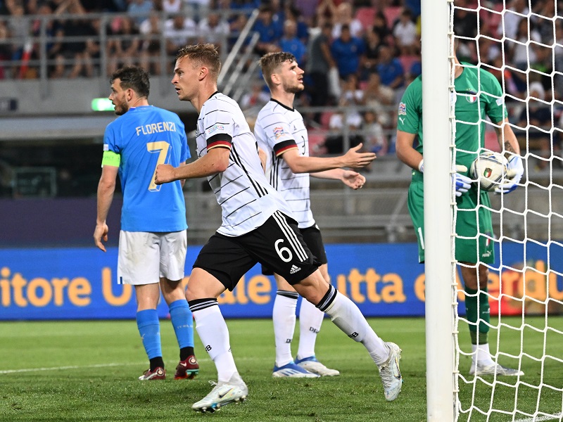 Die deutsche Nationalmannschaft startet mit einem 1:1-Unentschieden bei der Auswahl Italiens in die neue UEFA-Nations-League-Saison. Nach dem torlosen Pausenunentschieden erwischte die Squadra Azzurra den deutlich besseren Wiederbeginn und kam durch Scamacca schnell zu einer guten Chance (48.). Wenig später ließ Politano eine weitere Gelegenheit ungenutzt (56.).