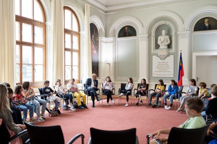 Vaduz (ots) – Am Donnerstag, 9. Juni 2022, waren die Schülerinnen und Schüler der Klasse 4a der Primarschule Balzers auf Einladung von Regierungschef Daniel Risch zu Besuch im Regierungsgebäude in Vaduz.