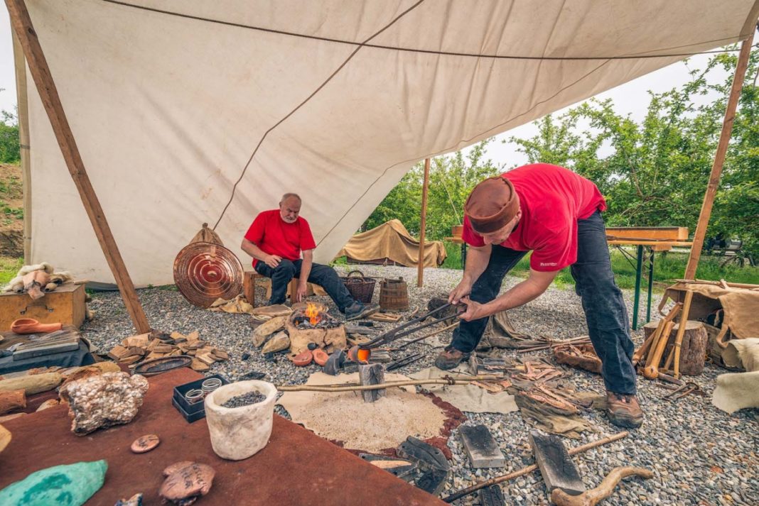 Der Archäotechniker Frank Trommer bietet einmalige Einblicke in die Metallverarbeitung. Er bedient sich dabei urgeschichtlicher und historischer Methoden. So produziert er vor Ort zum Beispiel römisches Toilette-Besteck. Bei den Vorführungen stellt er den Zuschauern die verschiedenen Arbeitsprozesse vom Erwärmen, Schmelzen bis zum Guss des Metalls sowie die dafür notwendigen Werkzeuge vor.