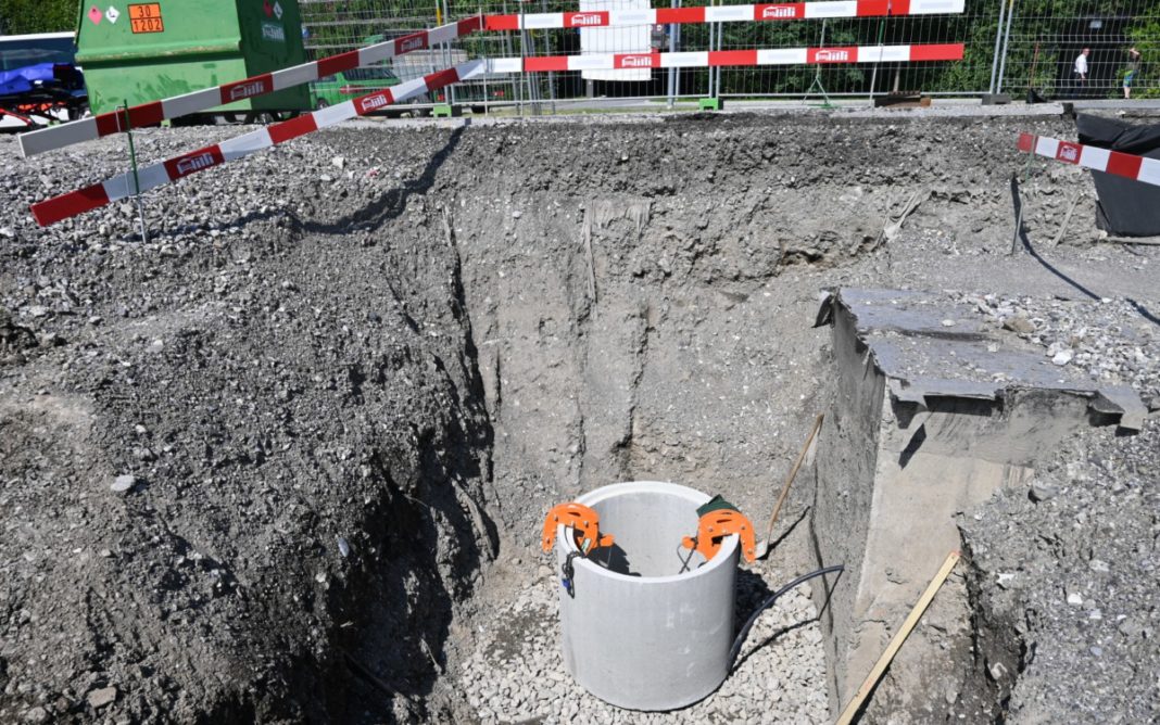 Gegen 15:35 Uhr waren zwei Arbeiter einer Baufirma damit beschäftigt, auf einer Baustelle einen Schacht zu setzen bzw. arbeiteten in der Nähe einer Baugrube. Hierbei verlor ein Mitarbeiter das Gleichgewicht und stürzte 2.5 Meter in die Tiefe.
