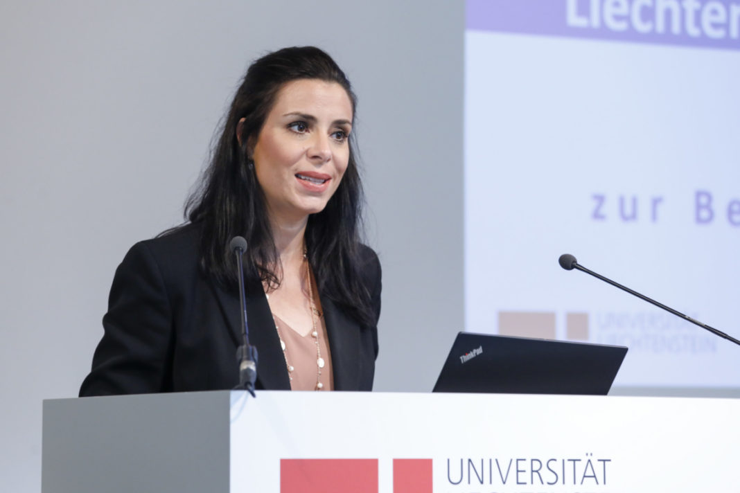 Am Themennachmittag «Liechtensteinischer Vorsitz im Europarat» an der Universität Liechtenstein folgten Studierende und Alumni der drei Executive-Masterstudiengänge (LL.M.) sowie Interessierte aus Liechtenstein und der Region dem Impulsreferat der Aussenministerin Dominique Hasler sowie dem Vortrag zum Vorsitz Liechtensteins im Ministerkomitee des Europarats von Botschafter Domenik Wanger.