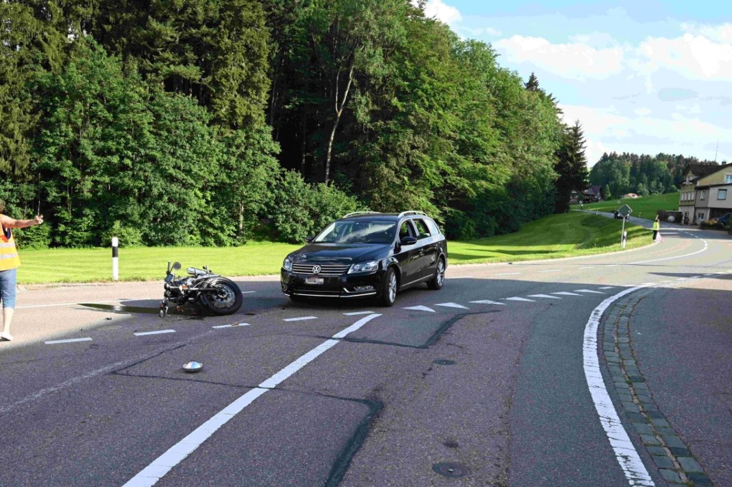 Ein 38-jährige Motorradfahrer fuhr mit seinem Motorrad auf der Flawilerstrasse von Flawil in Richtung Degersheim. Zur selben Zeit war eine 41-jährige Autofahrerin mit ihrem Auto in die entgegengesetzte Richtung unterwegs. Auf Höhe der Einmündung Flawilerstrasse/Wolfertswilerstrasse verlangsamte sie und beabsichtigte, links in die Wolfertswilerstrasse abzubiegen. Während die Autofahrerin abbog, kam es zu einer Kollision mit dem Motorradfahrer. Das Motorrad prallte frontal in die Seite des Autos. Der Motorradfahrer wurde leicht verletzt. Er wurde vom Rettungsdienst ins Spital gebracht. Beim Motorrad entstand ein Totalschaden.