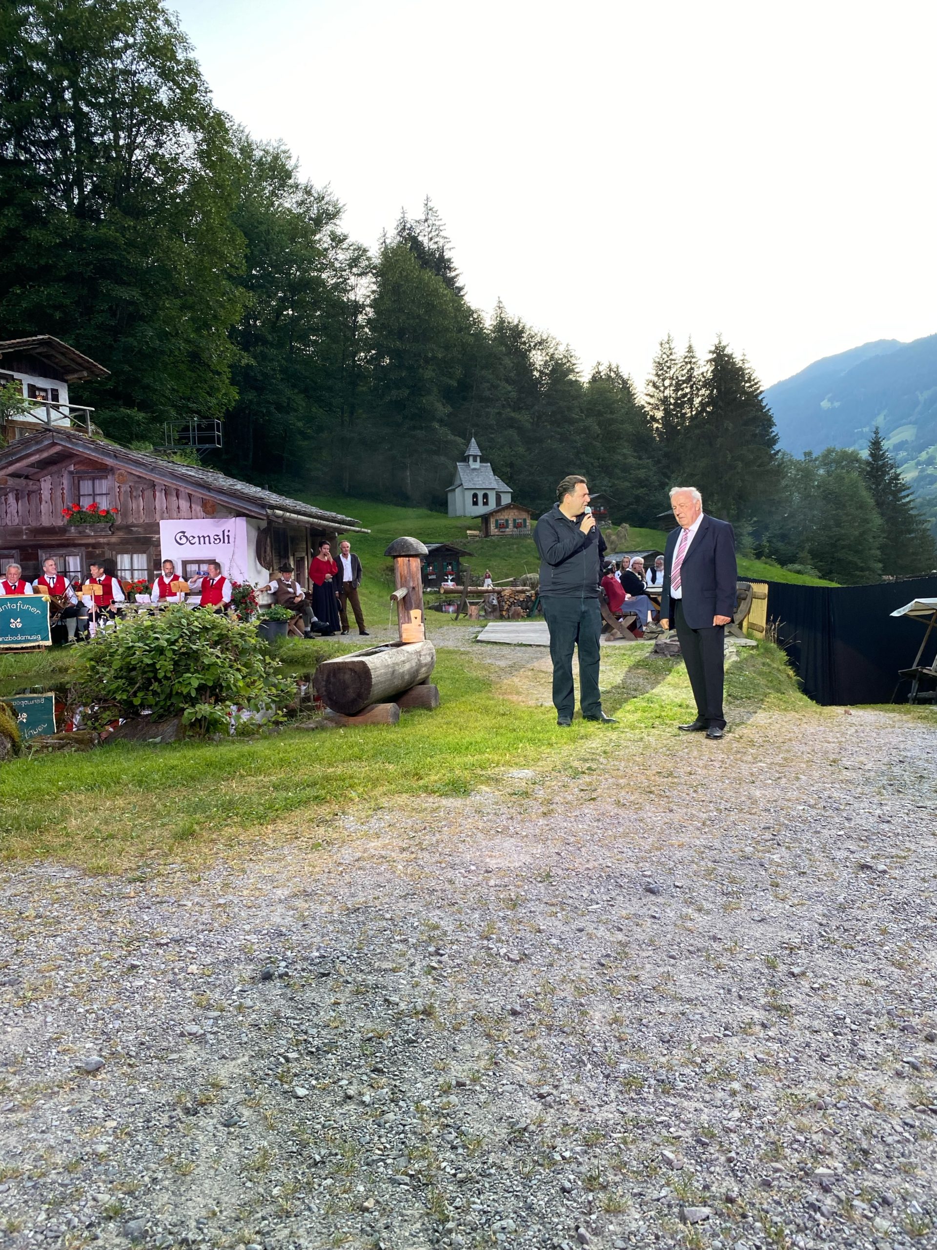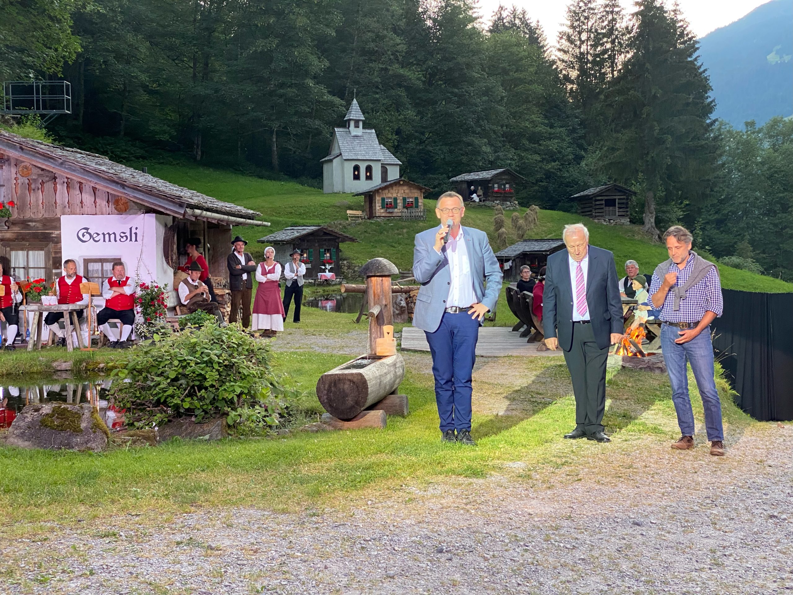Traumhaftes Wetter, sommerliche Abendtemperaturen, ausgebuchte Plätze und klingende Töne der Montafoner Tanzbodamusik: sichtlich begeistert begrüßte Ewald Netzer am vergangenen Samstagabend die rund 450 Gäste bei der Premiere der 22. Montafoner Sagenfestspiele. „Alle Mitwirkenden stehen mit Leib und Seele und vollem Engagement hinter der Umsetzung der Montafoner Sagenfestspiele – dieseAbende sind die Belohnung für alle von uns“, eröffnete Netzer den Premierenabend. Dankend wendete ersich an die Sponsoren, unter anderem die Brau Union, das Handelshaus Wedl, die Wiener Städtische sowie Montafon Tourismus und begrüßte gleichzeitig die Ehrengäste des Abends. Unter ihnen waren unteranderem Landtagsabgeordneter Christoph Thoma, der Silbertaler Bürgermeister Thomas Zudrell, Standesrepräsentant Jürgen Kuster sowie Geschäftsführer von Montafon Tourismus, Manuel Bitschnau. „Erneut gratuliere ich dem gesamten Team der Montafoner Sagenfestspiele zu diesem Erfolg, dem großenEngagement und zu dieser grandiosen Qualität, die hier im Silbertal zu ausverkauften Aufführungen führt“,zeigte sich Manuel Bitschnau begeistert. Christoph Thoma zeigte ebenfalls große Begeisterung für die Montafoner Sagenfestspiele. Mit den Worten: „Was das Silbertal hier jedes Jahr auf die Beine stellt, dass ein ganzes Dorf hier einen Erlebnisraum schafft – das ist wirklich sensationell“ eröffnete er die 22. Montafoner Sagenfestspiele.