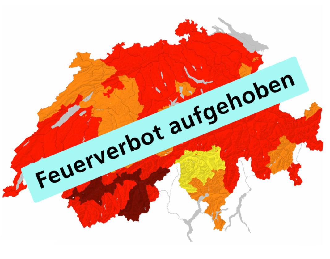 Aufgrund der in den letzten Tagen gefallenen Niederschläge kann das Feuerverbot im Wald und in Waldesnähe ab Freitag, 19. August 2022, aufgehoben werden. Ein bedingtes Feuerverbot bleibt hingegen bis auf weiteres bestehen.