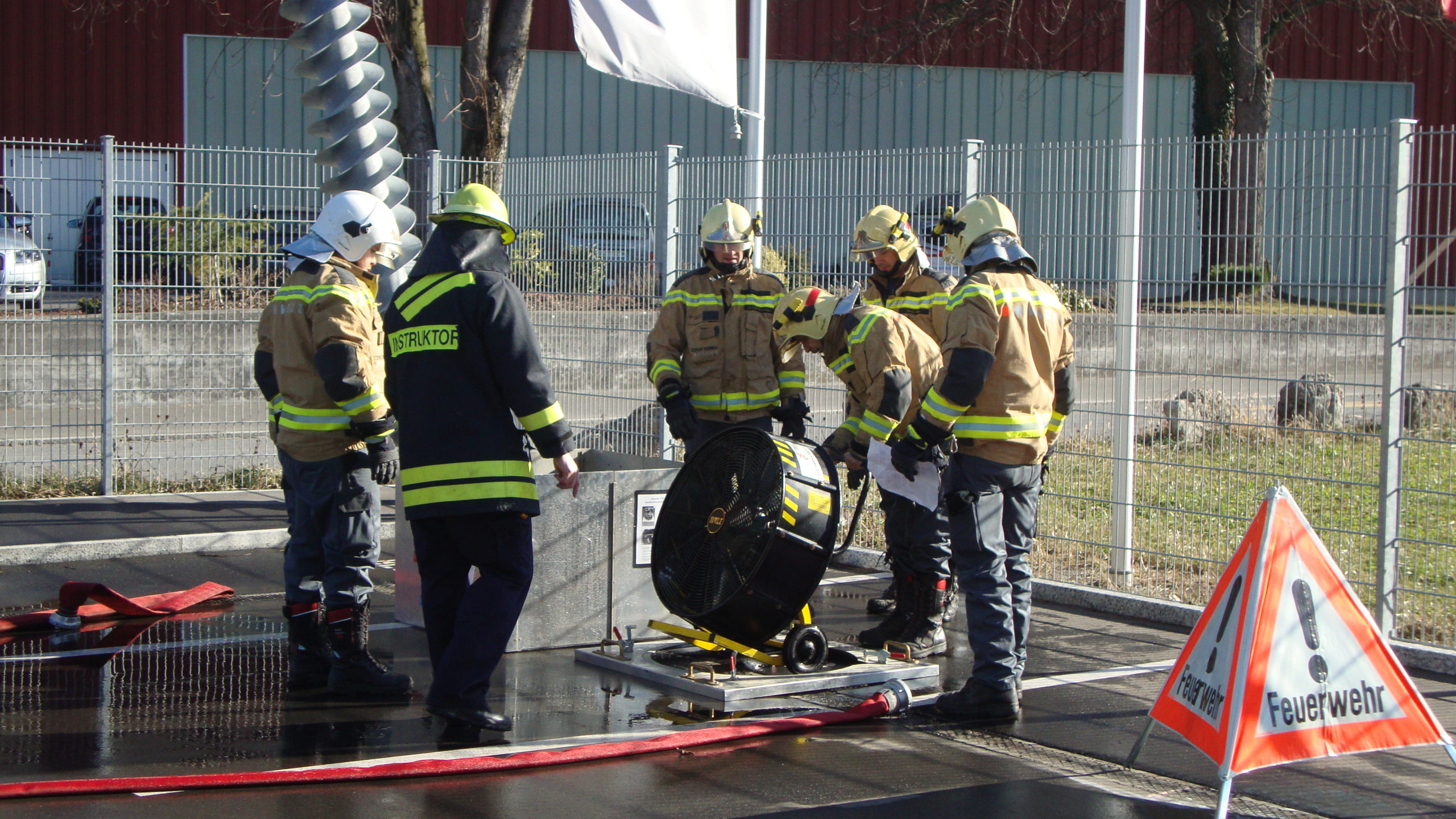 Überdruckbelüfter dienen der Entrauchung von Gebäuden und Tiefgaragen. Die 20 ange-meldeten Feuerwehrleute der Gemeinde- und Betriebsfeuerwehren des Landes lernen den taktisch richtigen Einsatz dieser Geräte und wissen um die Einsatzmöglichkeiten des mobilen Grossventilators des Feuerwehrstützpunktes Vaduz. Die praktischen Lektionen finden an verschiedenen Gebäuden in Triesen statt.