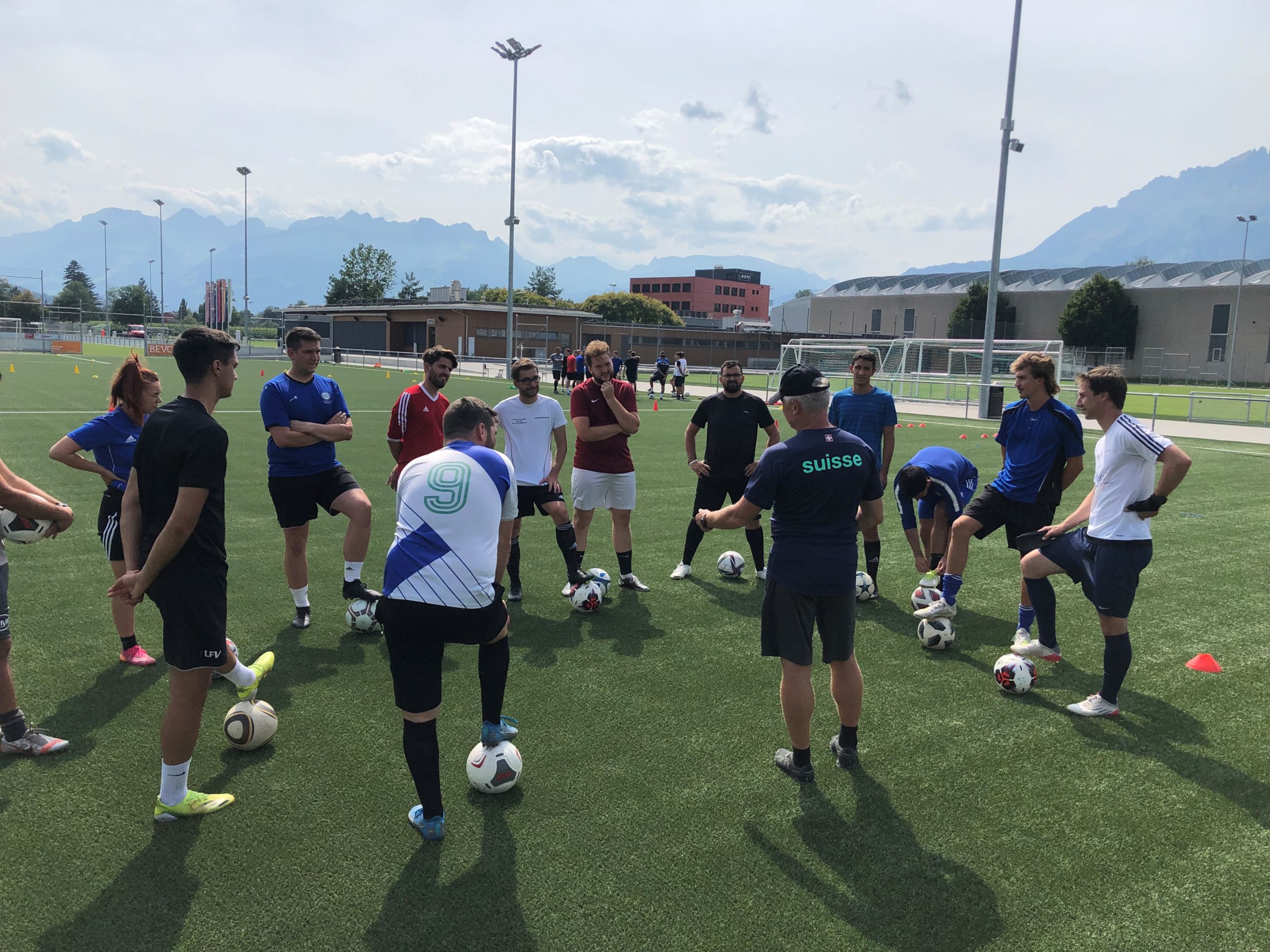 Das neue, praxisorientierte Programm welches das Bundesamt für Sport (BASPO) in Zusammenarbeit mit dem Schweizerischen Fussballverband (SFV) erarbeitet hat, legt grossen Wert auf den Praxisbezug, sodass das Gelernte anschliessend in den Trainings umgesetzt werden kann. Fragen wie: „Wie plane ich ein Training?“ und „Welche Kompetenzen brauche ich als Trainer oder Trainerin?“ und vieles mehr wurden während der Woche erarbeitet.