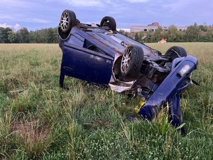 Im steil abfallenden Wiesenbord überschlug es das Auto mehrfach, bevor es auf dem Dach liegend zum Stillstand kam. Der Autofahrer blieb unverletzt und konnte das Auto selbständig verlassen. Das Auto erlitt Totalschaden.