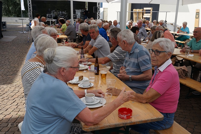 Im Beisein von Gemeindevorsteherin Daniela Erne und dem verantwortlichen Gemeinderat, Ressortinhaber Dominik Banzer sowie zahlreichen weiteren Ratsmitgliedern und Pfarrer Roland Casutt verbrachten die Seniorinnen und Senioren einen gemütlichen und unterhaltsamen Tag mit Musik beim Gemeindezentrum. Für Speis und Trank durch verschiedene lokale Anbieter war gesorgt und die Besucherinnen und Besucher konnten unterschiedliche Unterhaltungsprogramme besuchen. Unter anderem wurde die Feuerwehr besichtigt, zum anderen bot sich die Gelegenheit, unter fachkundiger Anleitung die neuen Fitnessgeräte im Sport- und Freizeitpark Blumenau auszuprobieren oder eine unterhaltsame Partie Boccia zu spielen. Das Kulturzentrum Gasometer lud zu Führungen ein und Pfarrer Roland Casutt begleitete die Gäste in die Marienkapelle und zeigte die Geschichte des Gebäudes und deren sakrale Einrichtungen auf.