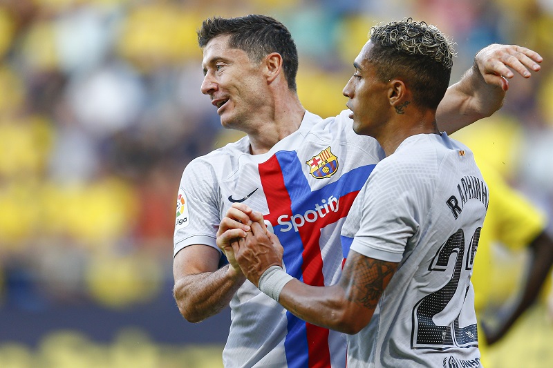 Robert Lewandowski und Raphinha Dias Belloli FC Barcelona weährend des Liga-Matches zwischen Cadiz CF und FC Barcelona vom September 9, 2022 in Cadiz, Spain. (Photo Picture Alliance, Frankfurt/Main.