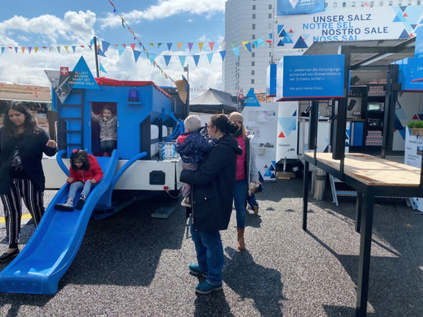 AM 8. Oktober 2022 haben Besucherinnen und Besucher am Stand der Schweizer Salinen Gelegenheit, viel Wissenswertes über die Geschichte des „Weissen Goldes“ und die der Schweizer Salinen zu erfahren. Man kann sein Salzwissen testen und sein eigenes Kräutersalz kreieren. Für Kinder gibt es eine Salz-Rutschbahn.