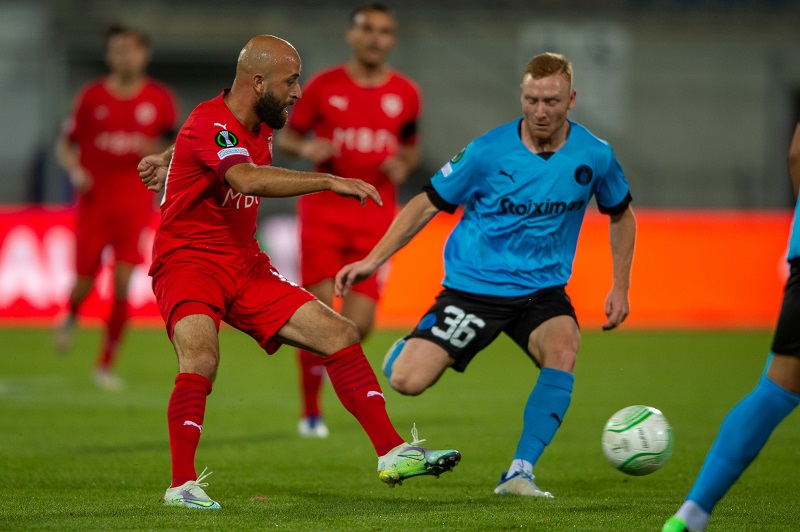 FCV – Apollo Limassol 0:0, am 8.9.2022. Im Bild (l.) Xhemajili (FCV). Foto: Jürgen Posch