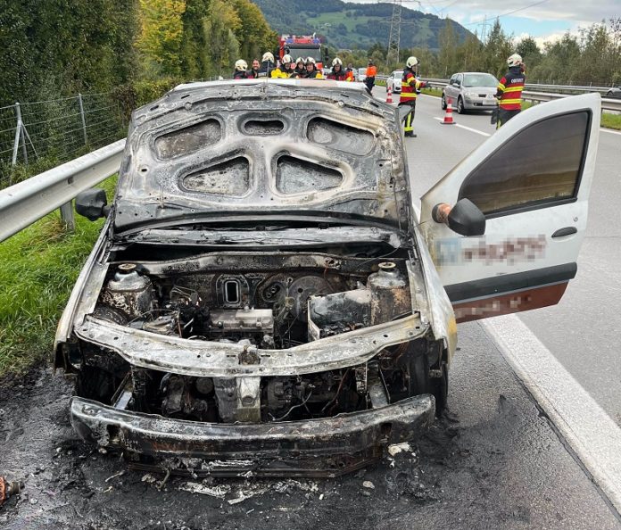 Sennwald – Am Montag (26.09.2022), kurz vor 11:45 Uhr, ist auf der Autobahn A13 ein Pick-Up in Brand geraten. Der 46-jährige Fahrer fuhr Rheintal aufwärts. Er bemerkte einen Leistungsverlust an seinem Pick-Up und lenkte diesen auf den Pannenstreifen. Dort stellte er während des Zündvorgangs Flammen im Bereich des Motors fest. Die aufgebotene Feuerwehr konnte den Brand unter Kontrolle bringen. Das Auto wurde total beschädigt. Es kam zu Verkehrsbehinderungen auf der Autobahn.