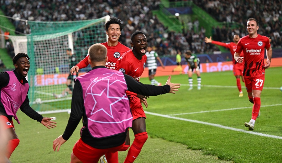 Da Tottenham Hotspur im Parallelspiel gegen Olympique Marseille in der Nachspielzeit noch mit 2:1 gewann, tun sie das als Gruppenzweiter. Arthur Gomes hatte die Portugiesen in Führung gebracht (39.), Daichi Kamada vom Punkt (62.) und Randal Kolo Muani (72.) sorgten dann für kollektiven Frankfurter Jubel.