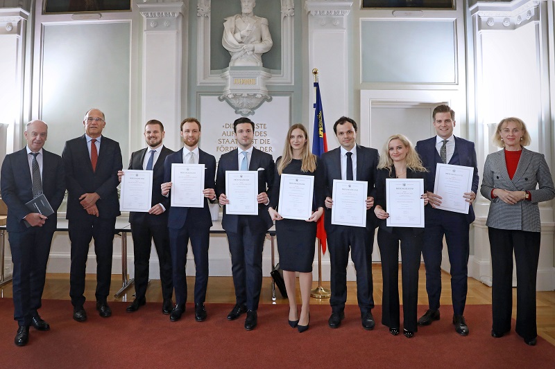 Bild: Justizministerin Graziella Marok-Wachter (rechts) hat sieben Absolventinnen und Absolventen der Rechtsanwaltsprüfung die Diplome überreicht. Quelle: IKR