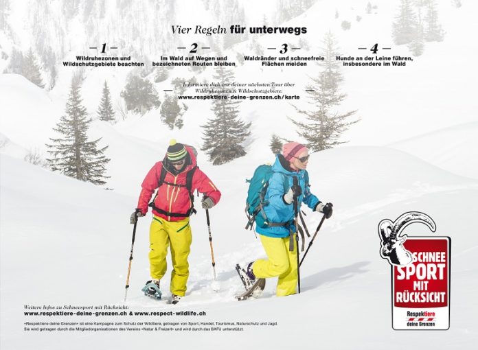 Die im deutschsprachigen Raum bekannte Informationskampagne „Respektiere deine Grenzen“ hat vier passende Verhaltensregeln für Schneesport mit Rücksicht formuliert: