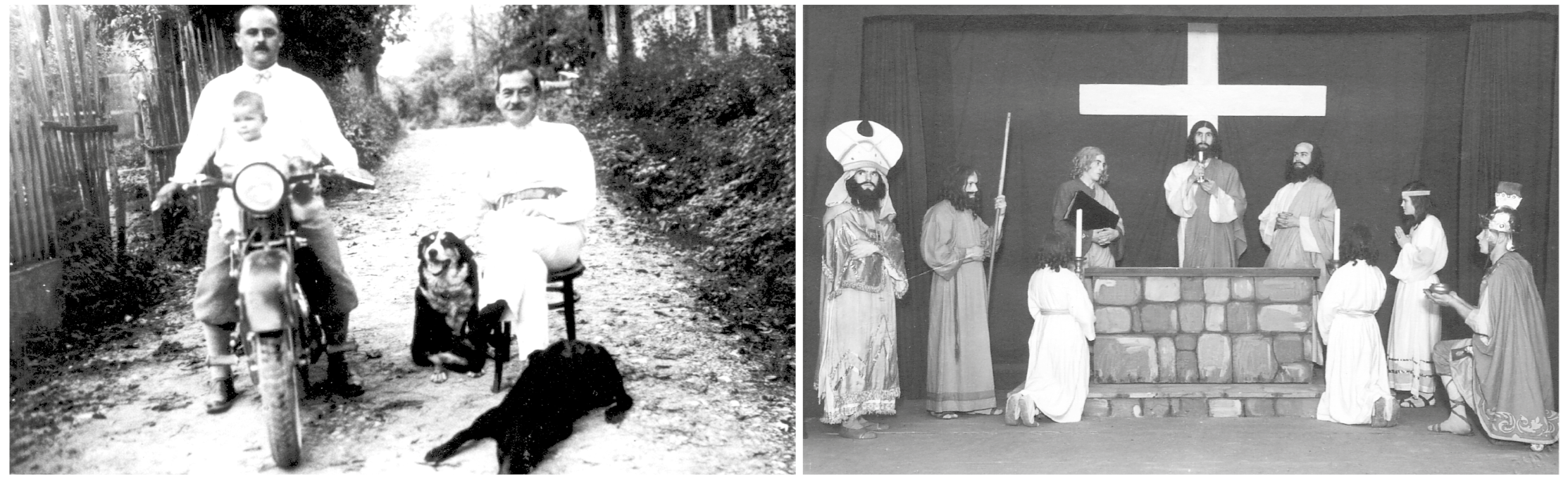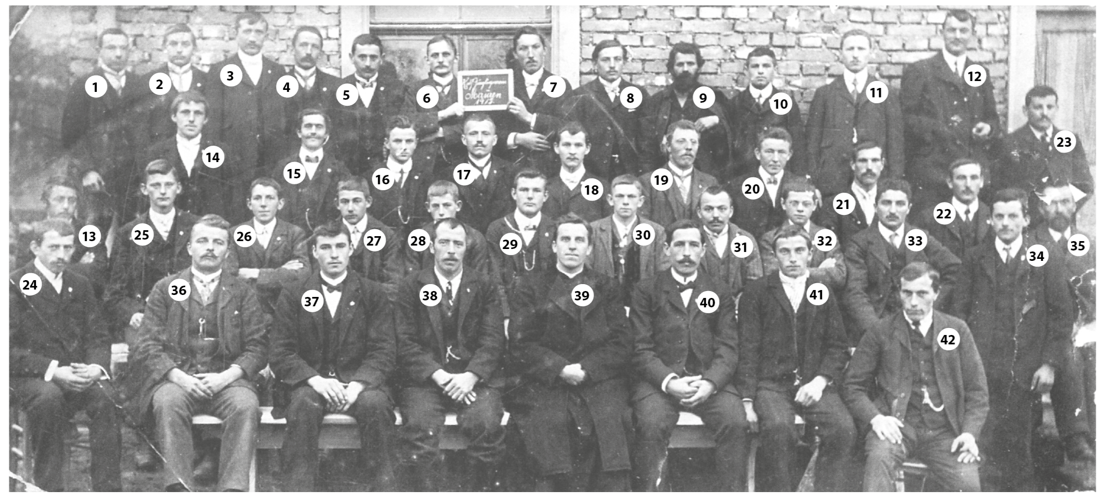 Bild rechts: «Die beiden Brüder oder Venetianische Rache» 1. Aufführung Kath. Jünglingsverein Mauren im Festsaale des Jugendheimes am 26.1./2.2./4.2.1913. Es spielten die Laienschauspieler, Hintere Reihe von links: Aurel Matt; Rudolf Oehry; Johann Matt; Philipp Kieber; Martin Alber Mitte: Gustav Marxer; Ruppert Ritter; Alois Mayer; David Mayer, Vorne: Emil Batliner; Ambros Kaiser; David Matt; Theodor Schädler; Georg Kaiser