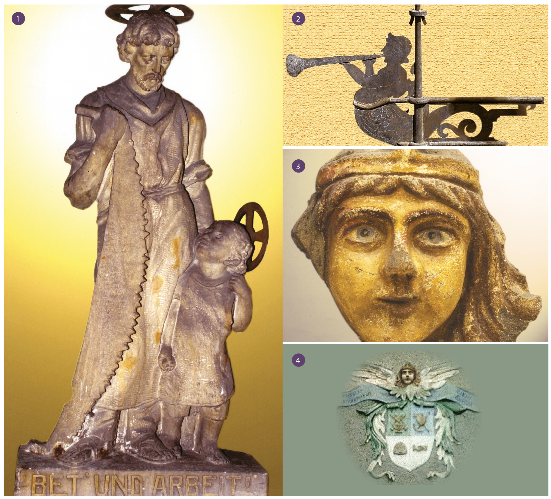 Die Bilder, die Stuckateur Josef Malin, der Vater des späteren Regierungsrates und weit über die Grenzen hinaus bekannten Künstlers Dr. Georg Malin, angefertigt hatte, zeigen, mit welcher Liebe zum Detail er am Werk war. Die Fassaden zur Strassenseite hin gestaltete er in den 1930er-Jahren in Zusammenarbeit mit den damals berühmten Stuckateuren, den Gebr. Bechtold aus Feldkirch, mit einer Nische, in welcher der Hl. Josef mit dem Jesusknaben dargestellt war. Die Wappen der Herrschaft Schellenberg und der Grafschaft Vaduz brachte Malin an der Nordostfassade zum «Jäger-Seppli-Huus» (heute «Strumpf-Oehri-Huus» und Elternhaus der Strumpf-Oehri-Buben) hin an. In Richtung des Anwesens von August Marock (heute Mattle-Überbauung) platzierte Josef Malin die Stuckatur eines herausragenden Engelkopfs mit zwei auf beide Seiten auswerfenden Schärpen. Beachtenswert war zudem die Deckenverzierung im Theatersaal des Jugendhauses. Auch dieses Werk fiel später der Spitzhacke zum Opfer. Die Einweihungsfeier des im Rohbau gefertigten Jugendheimes fand am Sonntag, 1.Dezember 1912, mit einer Theateraufführung statt.