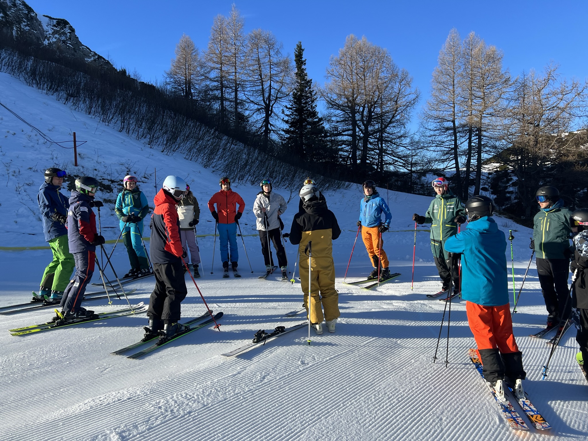 Unter anderem wurden Grundtechniken des Skifahrens wie Pflugdrehen, Parallelschwung und Carving vermittelt, die Gestaltung einer altersgerechten Lektion umgesetzt sowie Themen wie die Sicherheit im Schnee behandelt. Die intensiven Ausbildungstage wurden mit einem Lehrauftritt und einer Theorieprüfung abgeschlossen. Ein herzlicher Dank ergeht an die beiden Kursleiter Cédric Wagner und Dario Schio für die kompetente Kursleitung und die lehrreichen Ausbildungstage.