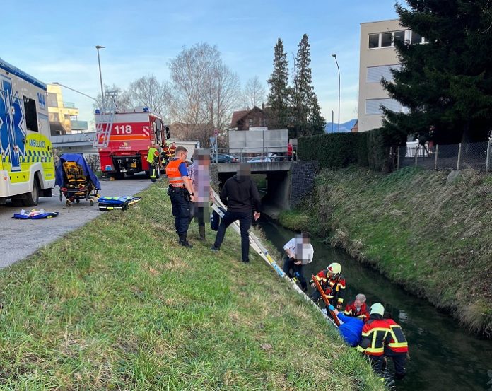Au – Am Neujahrs-Sonntag (01.01.2023), um 15:40 Uhr, ist ein 68-jähriger Mann mit seinem E-Bike in den Littenbach gefallen. Er konnte durch Passanten und Angehörige der Feuerwehr aus dem Wasser gezogen werden (siehe Bild). Der Mann musste durch den Rettungsdienst ins Spital gebracht werden.