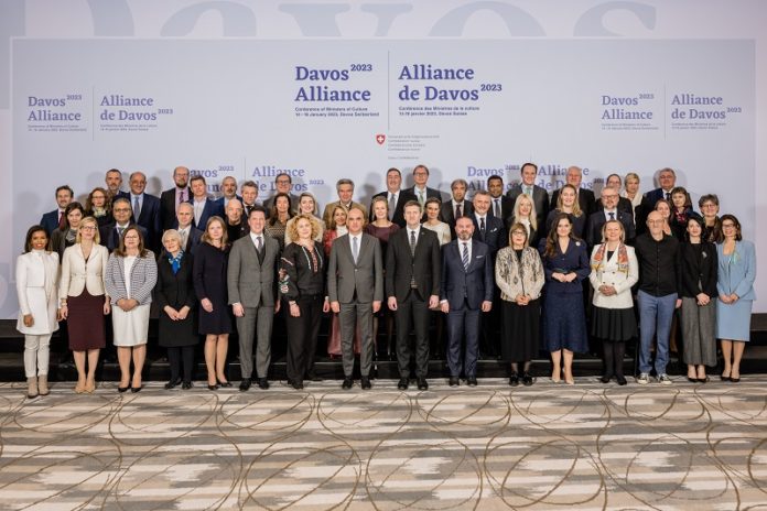 Gruppenfoto der Teilnehmer bei der Konferenz der europäischen Kulturministerinnen und Kulturminister in Davos