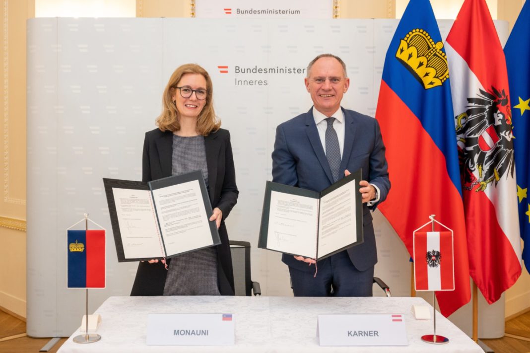 Am 17. Februar 2023 trafen Regierungschef-Stellvertreterin und Innenministerin Sabine Monauni und der österreichische Bundesminister für Inneres Gerhard Karner für ein Arbeitsgespräch sowie die Unterzeichnung von zwei Abkommen in Wien zusammen.