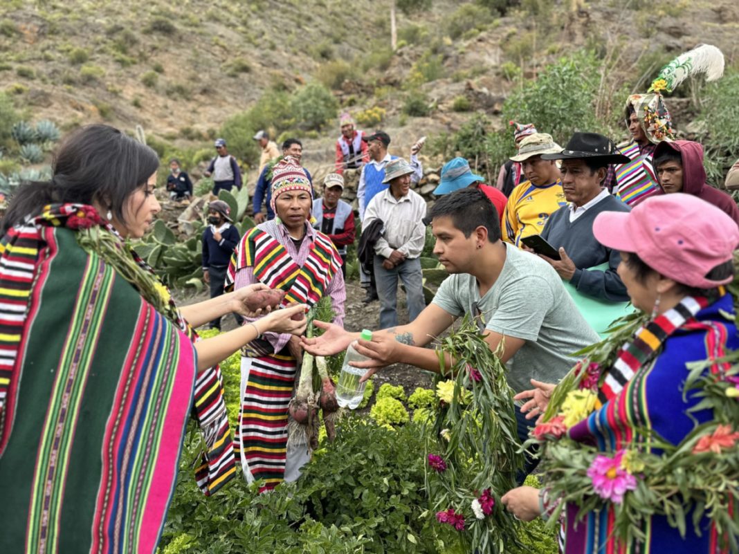 In San Pedro de Macha im Departement Potosí hatte Aussenministerin Hasler die Gelegenheit ein Projekt kennen zu lernen, welches einen umfassenden Beitrag zur Armutsbekämpfung und Nahrungssouveränität leistet und somit die Lebensumstände der Projektteilnehmenden nachhaltig verbessert. Bauernfamilien werden im Rahmen des Projekts in der Anwendung von nachhaltigen und resilienten Landwirtschaftspraktiken unterstützt, was wiederum ihre beruflichen Perspektiven auf dem Land verbessert. Die ökologische landwirtschaftliche Produktion sowie die Unterstützung von Arbeitsmigranten bilden einen weiteren Fokus dieses Projekts, von welchem insgesamt rund 2’700 Menschen profitieren.