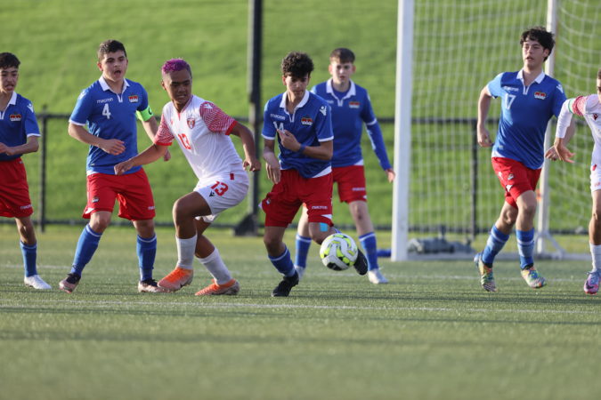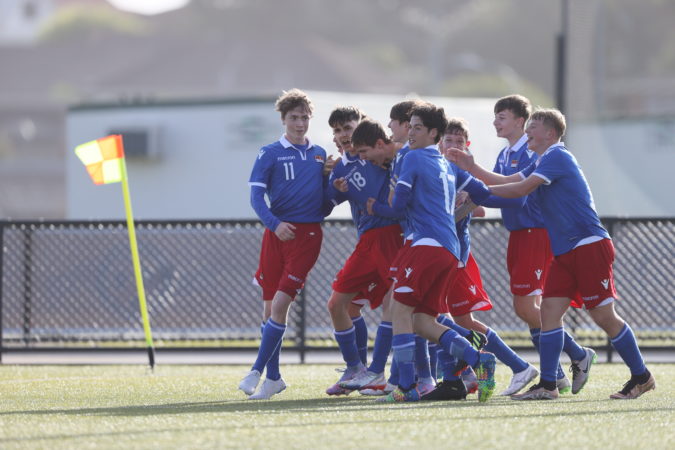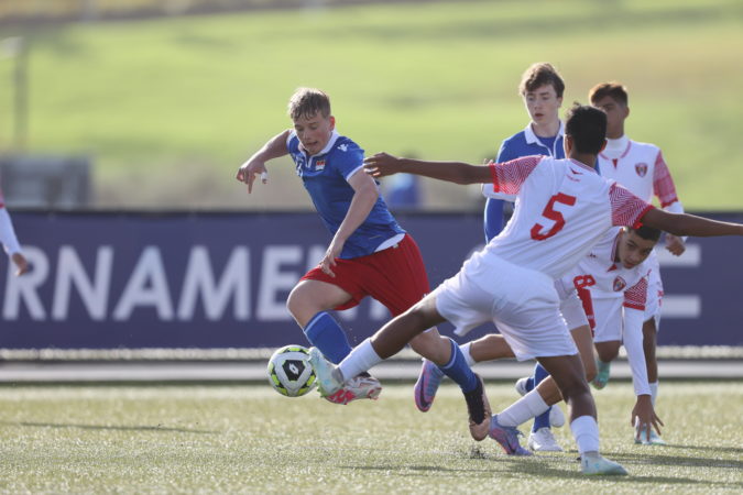 Auckland, Neuseeland, 11.04.2023: waehrend des Spiels der U15 National Team Development Tournament zwischen Liechtenstein vs Tahiti im OFC Home of Football am 11. April 2023 in Auckland, Neuseeland. (Foto von ©LFV/DeFodi/DLP/Simon Watts)