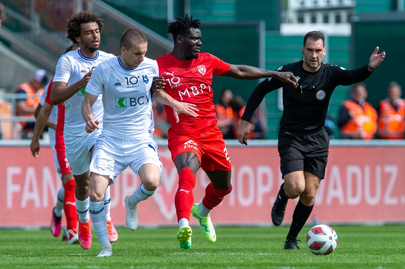 In der Anfangsphase dominierte das Team aus dem Westschweiz, allerdings ohne die prickelnden Szenen vor dem Vaduzer Gehäuse, auch nicht bei den Eckbällen. Vaduz war immer Herr der Lage. Die gefährlichste Szene hatten die Gastgeber in der 45.min.zu überstehen als Xhemajli den Lausanner Archie Brown im Strafraum zu Fall bringt. Doch Brighton Labeau vergibt die Riesenchance.