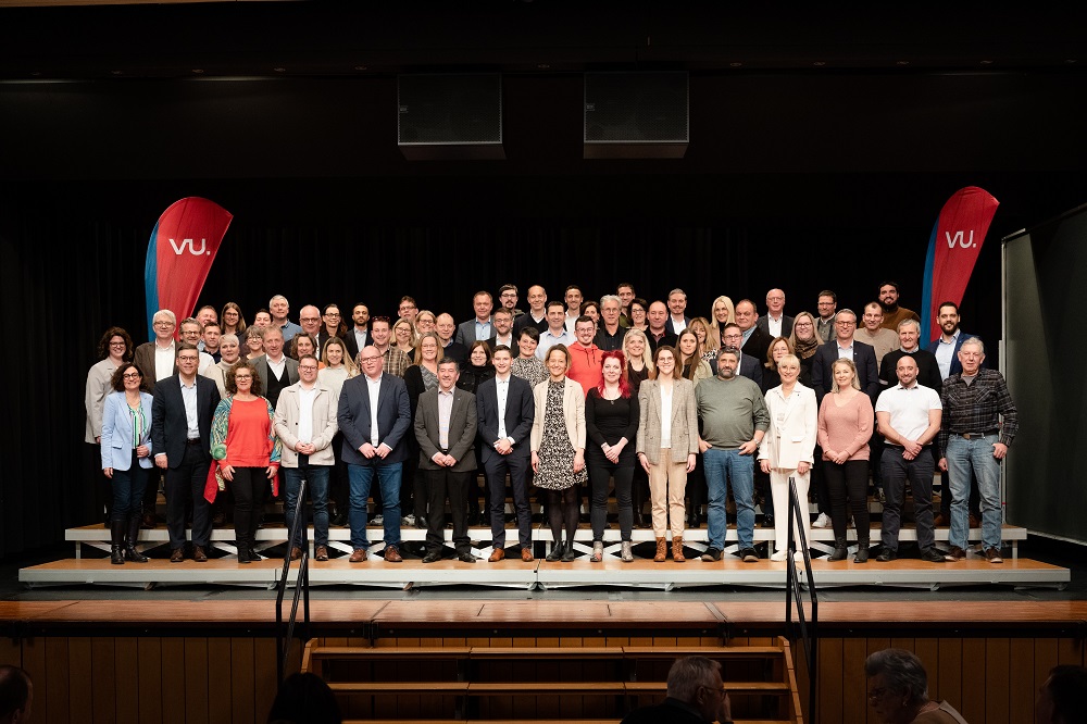 Das Foto zeigt (fast) alle Kandidatinnen und Kandidaten der VU. Es wurde beim Nominationsparteitag aufgenommen. Bild von der VU zur Verfügung gestellt.