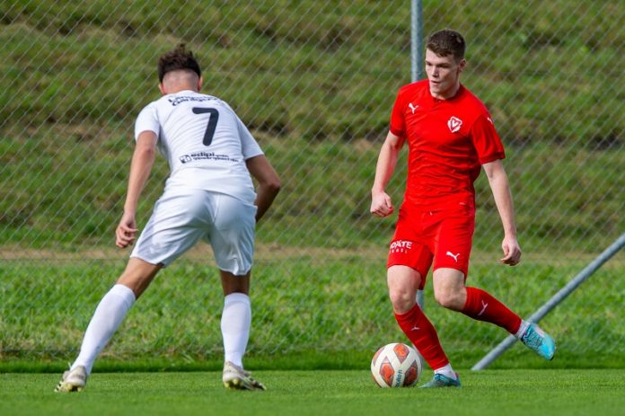 23.10.2022, Tabellenführer Vaduz II im Herbstspiel 2022 gegen Flawil. Im Bild (r.) Netzer vom FCV. Foto: Jürgen Posch