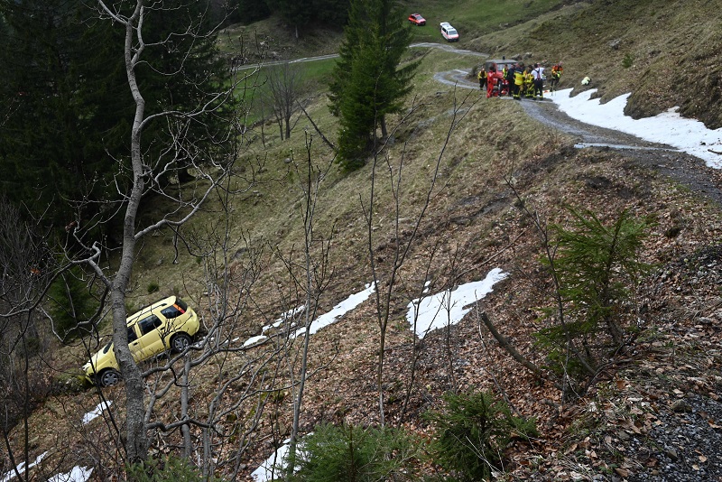 Aufgrund der Eingangsmeldung und der weit abgelegenen Unfallstelle, wurde zuerst ein Helikopter der Rega zur Unfallörtlichkeit aufgeboten. Der Rega-Notarzt bestätigte den Tod des Autofahrers. Die anschliessende Unfallaufnahme sowie auch die Bergung gestaltete sich schwierig, da der Alpweg für grössere Fahrzeuge nicht befahrbar ist. Der Verstorbene, ein 75-jähriger im Kanton St.Gallen wohnhafter Schweizer, musste deshalb mit dem Helikopter ausgeflogen werden. Für die Bergung des Autos musste ein auf Arbeiten im unwegsamen Gelände spezialisiertes Forstunternehmen aufgeboten werden.