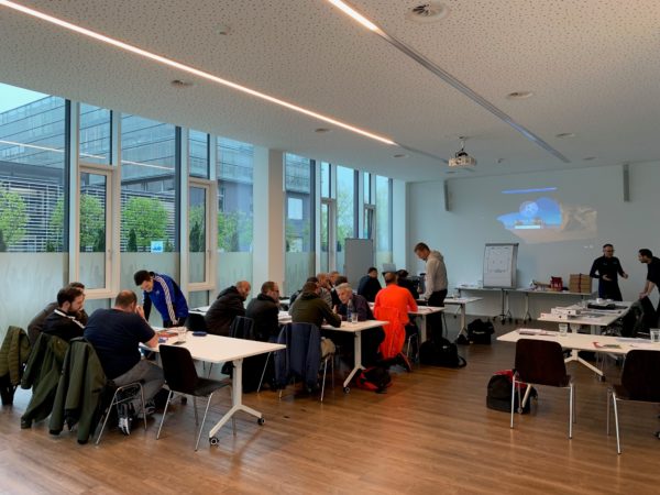 Die Trainer mussten am Ende des Kurses eine Theorieprüfung absolvieren und ein Spielturnier im Kinderfussball vom Einrichten der Turnhalle bis hin zur Verpflegung selbst organisieren.