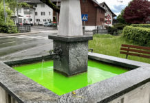Kein Stopp der Tunnelspinne: Brunnen aus Protest grün gefärbt