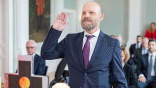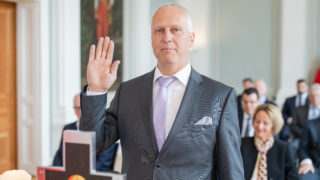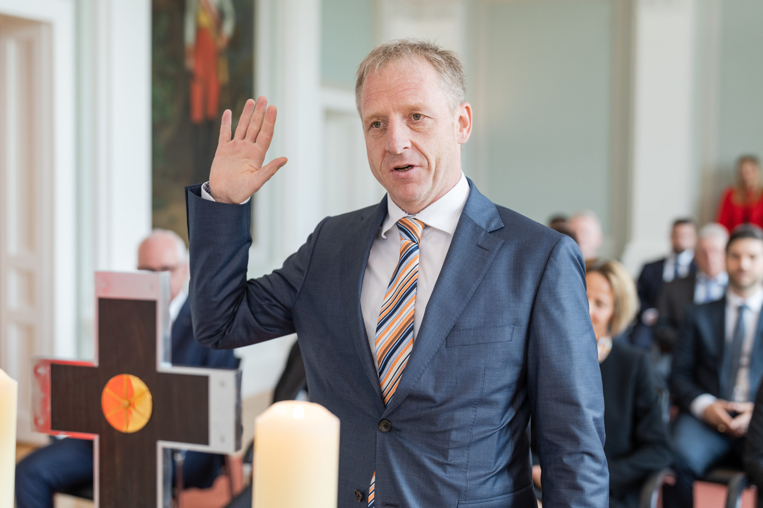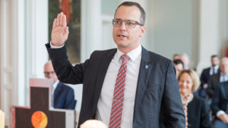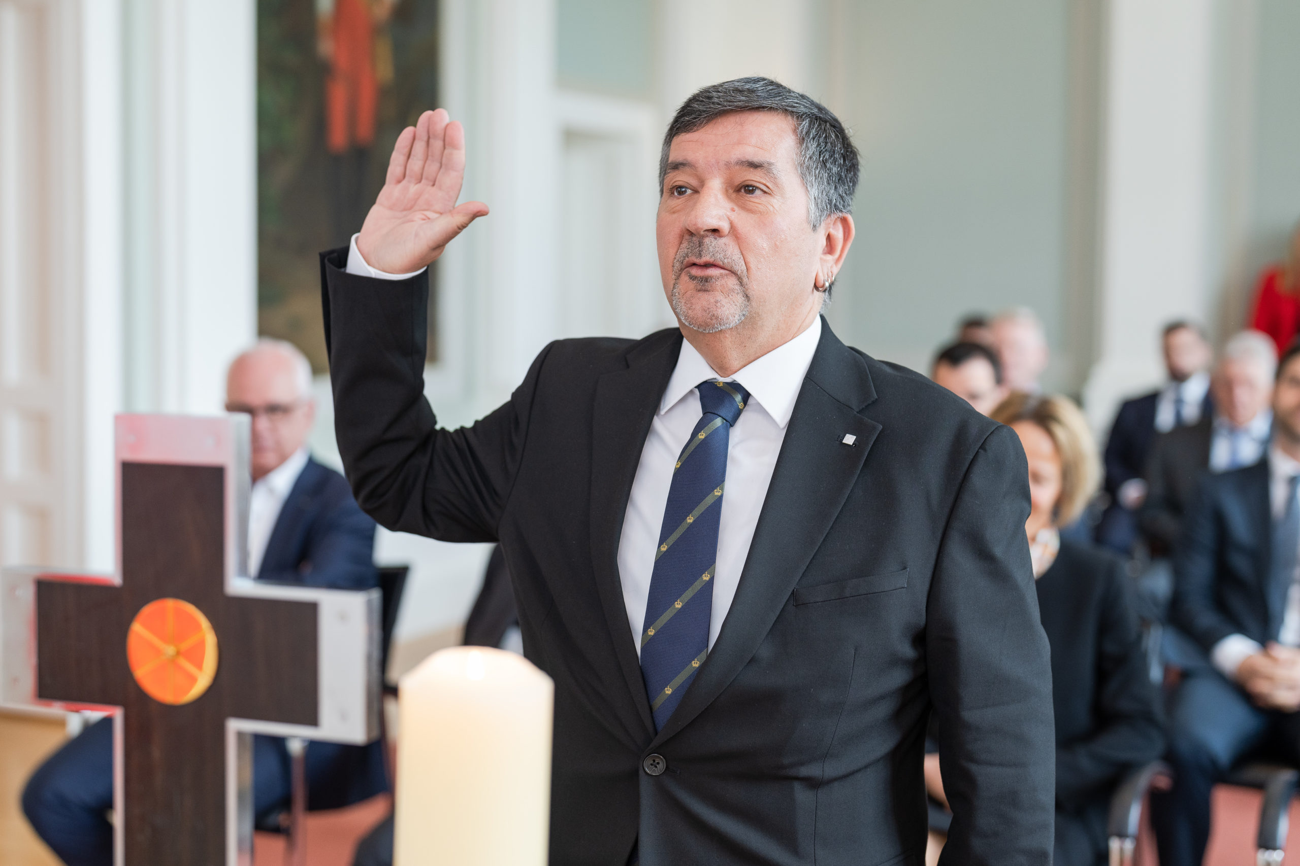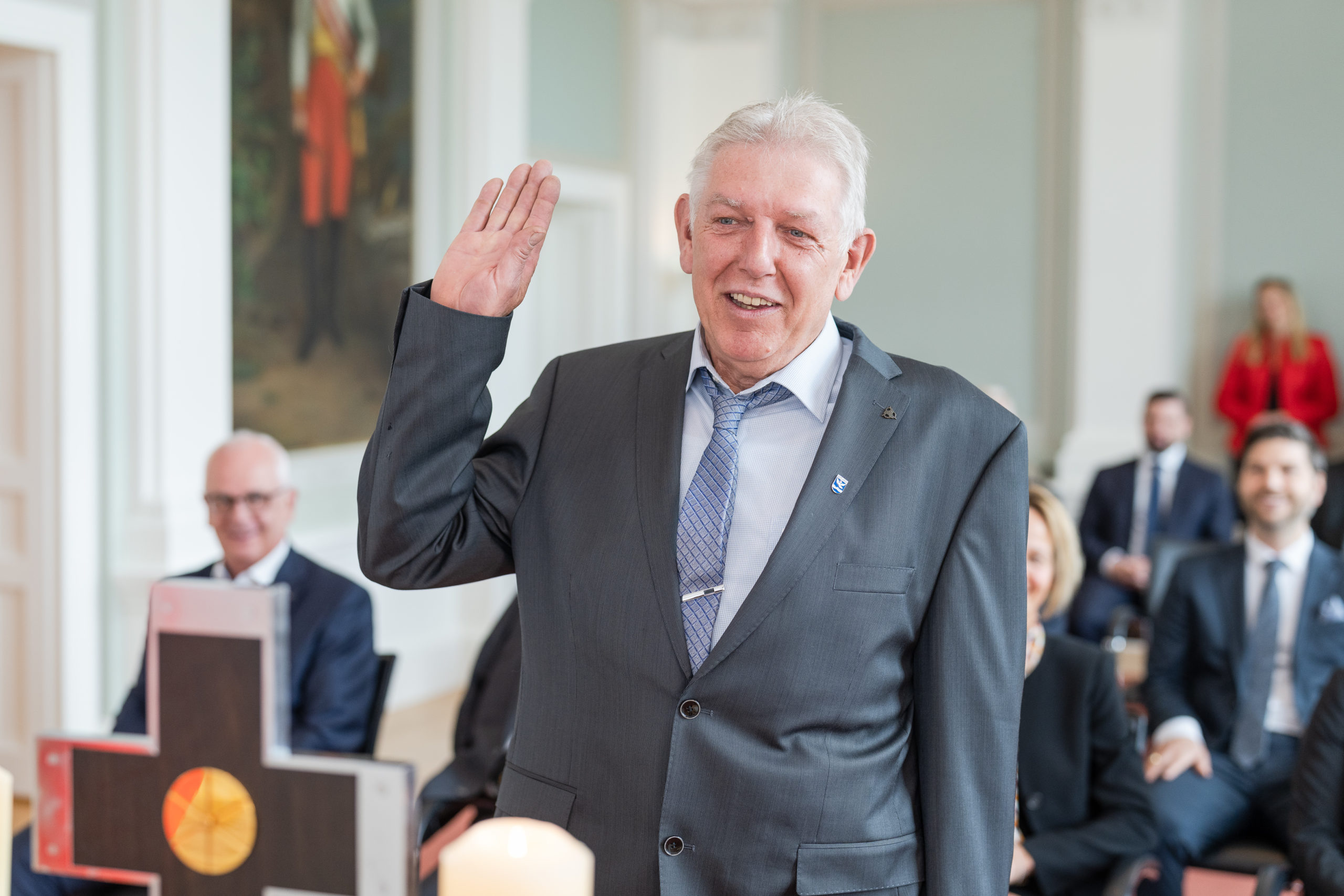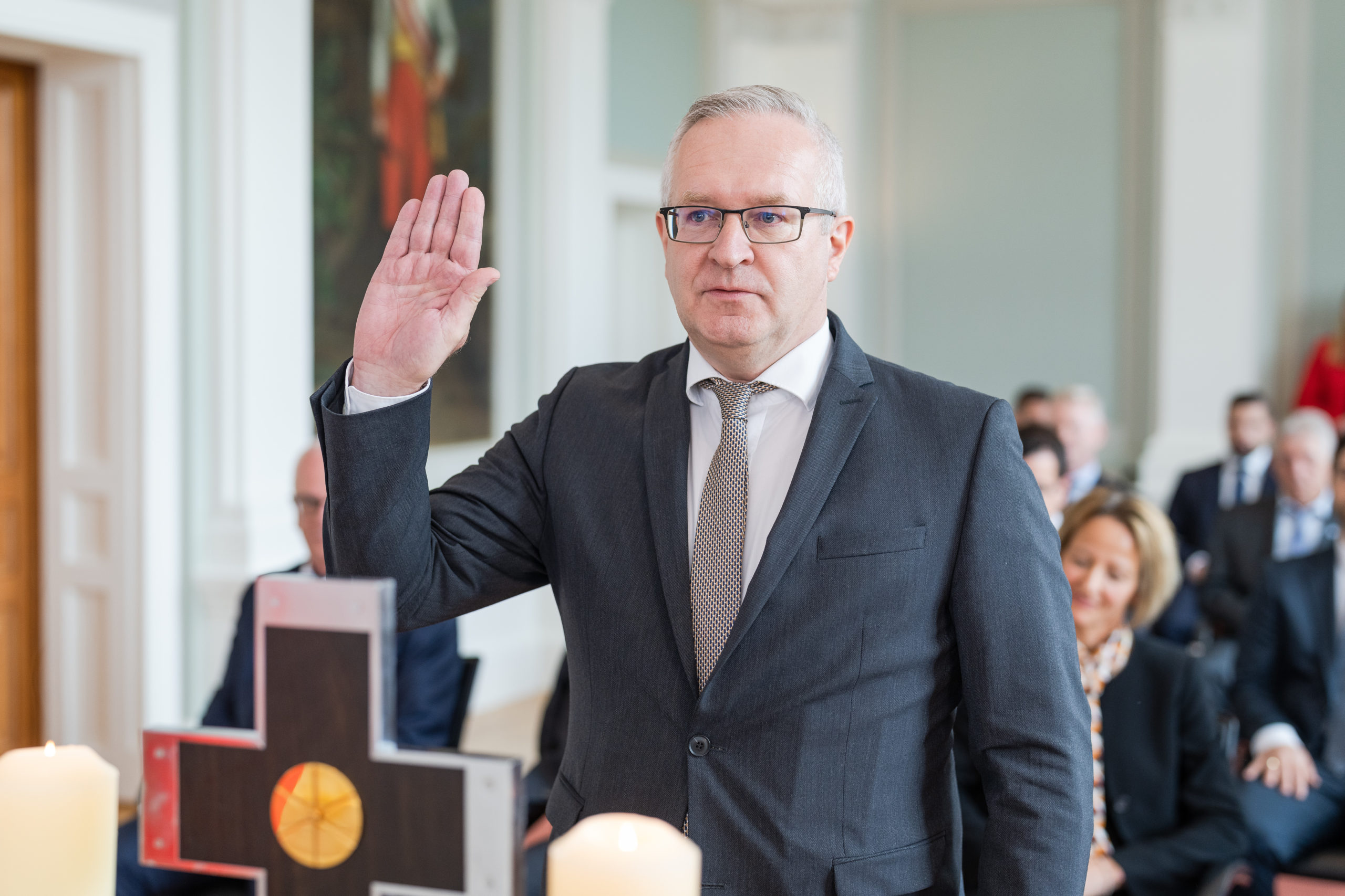 Regierungschef Daniel Risch vereidigte am Freitag, 12. Mai 2023, die Bürgermeisterin und die Gemeindevorsteherinnen und -vorsteher sowie deren Stellvertreterinnen und Stellvertreter im Fürst Johannes Saal im Regierungsgebäude in Vaduz.
