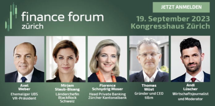 Die Premiere findet am 19. September 2023 im Kongresshaus Zürich statt und widmet sich dem Thema «Zeitenwende am Finanzplatz Schweiz». Die Gäste erwarten hochkarätige Referate und Talkrunden , informative Workshops und attraktive Netzwerk-Möglichkeiten.