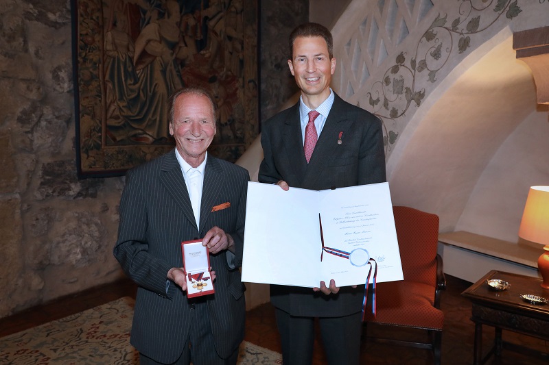 Vaduz (ots) – Erbprinz Alois von und zu Liechtenstein hat in Stellvertretung von Fürst Hans-Adam II. am Mittwoch, 10. Mai 2023, Benno Marxer zu einer Verdienstzeichenverleihung auf Schloss Vaduz empfangen.