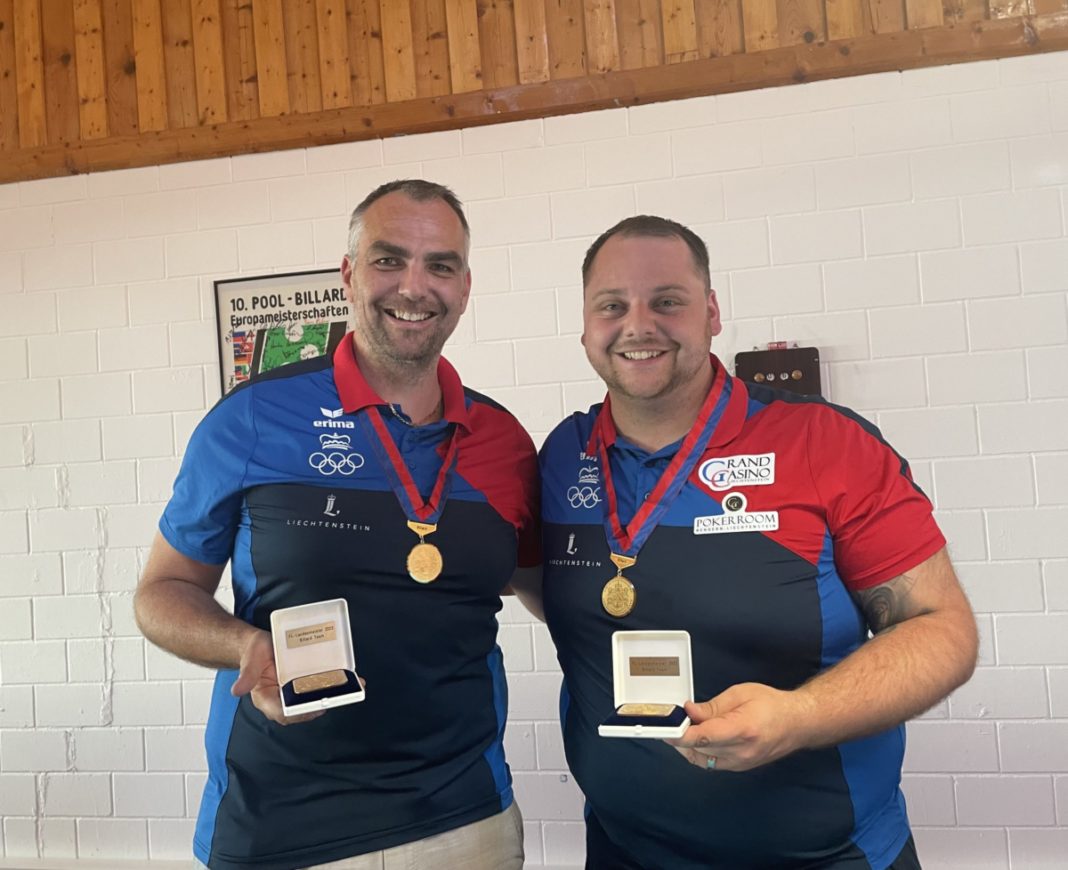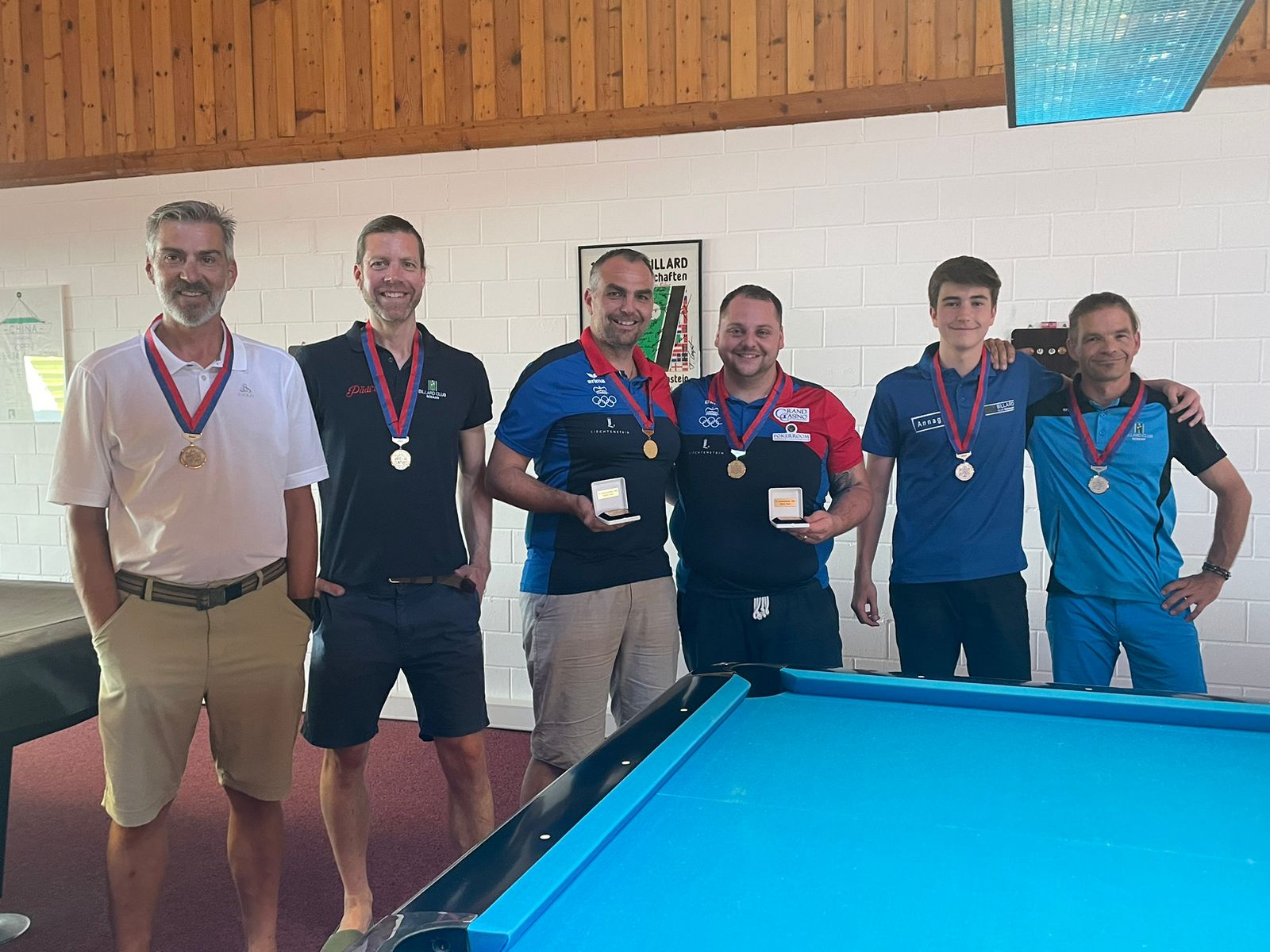 Das Finale war nicht zwingend hochklassig, was auch den gut 30 Grad im Clubhaus geschuldet war. Es blieb bis zum Schluss sehr spannend. Pomberger/Büchel waren bis zum 5:3 immer wieder mit zwei Games in Front. Das Blatt wendete sich. Die Situationen, die zu Beginn eher gegen das Team Heeb/Biedermann liefen, entschieden sich nun zu Gunsten des Teams. Nach einem „Fluke“ (Kugel unabsichtlich gelocht) konnten Heeb/Biedermann den Tisch abräumen und auf 5:5 ausgleichen. Anschliessend räumten Heeb/Biedermann nach einem Fehler des Gegners den Tisch und stellten auf 6:5. Nun fehlte noch ein Game zum Titel: Biedermann erhielt die Chance, die letzte 9 zu Lochen, liess diese aber im Loch liegen und somit konnten Pomberger/Büchel auf Hill-Hill stellen. Im entscheidenden Game behilt das Team Heeb/Biedermann dann die Nerven, bis Heeb eine Stellung auf die Entscheidende 9 zu kurz kam. Biedermann setzte alles auf eine Karte und versuchte über eine Bande die 9 zu Lochen, verfehlte aber das Mittelloch. Zum Glück für Heeb/Biedermann fiel die 9 aber auf dem gegenüberliegenden Loch und somit dürfen sich Heeb/Biedermann zum vierten Mal Team-Landesmeister nennen.