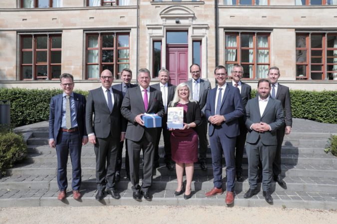 Dominik Diezi (Regierungsrat Thurgau), Daniel Risch (Regierungschef Fürstentum Liechtenstein), Patrick Strasser (Regierungsrat Schaffhausen),Maroš Šefčovič (Vizepräsident der EU-Kommission), Alfred Stricker (Regierungsrat Appenzell Ausserrhoden), Melanie Huml (Staatsministerin Bayern; Vorsitz), Marc Mächler (Regierungsrat, St.Gallen), Markus Wallner, (Landeshauptmann Vorarlberg), Roland Inauen (Reg. Landammann Appenzell Innerrhoden), Florian Hassler (Staatssekretär Baden-Württemberg) und Marc Ehrensperger (Generalsekretär Finanzdirektion Zürich) (Quelle: Staatskanzlei Bayern)