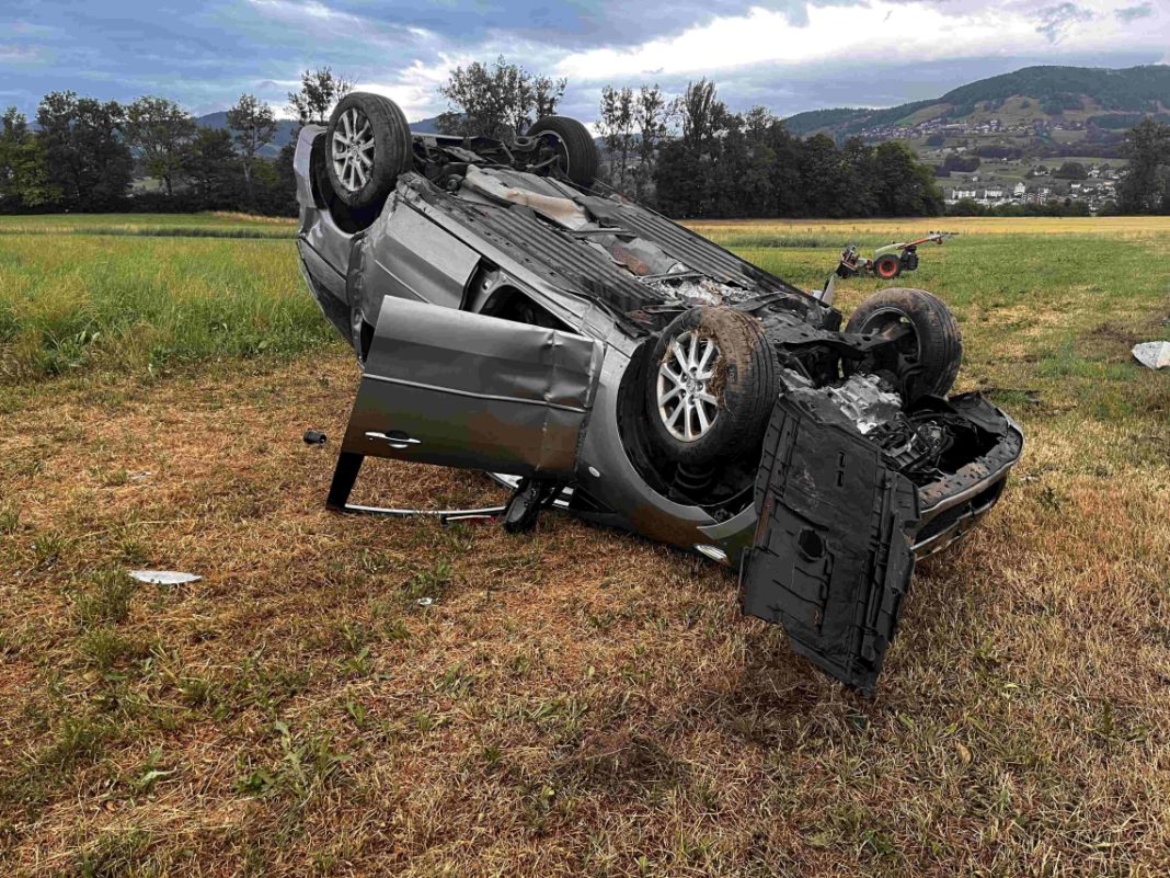 Am Donnerstag (22.06.2023), um 19:35 Uhr, hat sich auf der Benknerstrasse ein Selbstunfall ereignet. Ein Auto überschlug sich nach einem Zusammenprall mit einem Metallpfahl und kam auf dem Dach zum Stillstand. Der 18-jährige Autofahrer wurde dabei leicht verletzt.