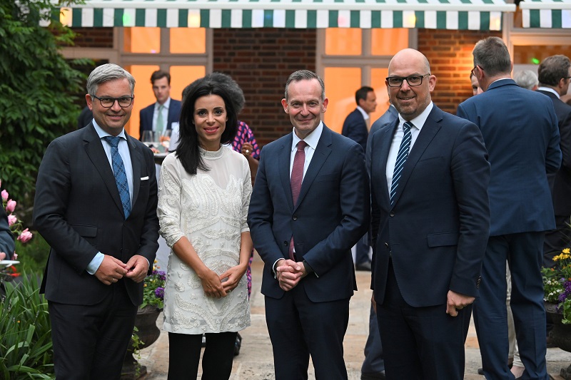 Der Einladung der Gastgeberin folgten u.a. der Bundesminister für Digitales und Verkehr, Volker Wissing, Jörg Kukies, Staatssekretär im Bundeskanzleramt und enger Berater von Bundeskanzler Olaf Scholz, die parlamentarische Staatssekretärin des Bundesfinanzministeriums, Katja Hessel, Bundespräsident a.D. Joachim Gauck, Bundestagspräsident a.D. Norbert Lammert, zahlreiche Abgeordnete des Bundestages sowie Botschafterinnen und Botschafter befreundeter Staaten, Medienschaffende und viele weitere Gäste. Auf Einladung des Regierungschefs nahm auch der österreichische Finanzminister Magnus Brunner am Empfang teil.