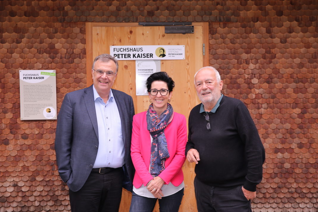 In diesem Haus, unmittelbar neben den Fuchsbau, kann man die nachtaktiven Tiere auf Monitoren untertags in ihrem Bau beobachten. Das Haus weist auch zahlreiches wild- und waldpädagogisches Anschauungsmaterial auf. Peter Kaiser (1793-1864) war eine Persönlichkeit, die als Pädagoge, Historiker und Politiker gewirkt und sich vor allem um den Naturschutz engagiert hat. Für die ‚Gedächtnisstiftung Peter Kaiser (1793-1864)‘ als grosszügige Unterstützerin des Wildparks passt gerade der pädagogische Aspekt des Fuchshauses in idealer Art und Weise zum erzieherischen und wissenschaftlichen Wirken von Peter Kaiser. Davon konnten sich die Repräsentanten der Stiftung, Stiftungsratspräsident Alexander Batliner (links) und Stiftungsrätin Beatrice Ortler-Hilti (mitte), bei einem Lokalaugenschein im Beisein von Wildpark-Präsident Wolfgang Burtscher überzeugen.