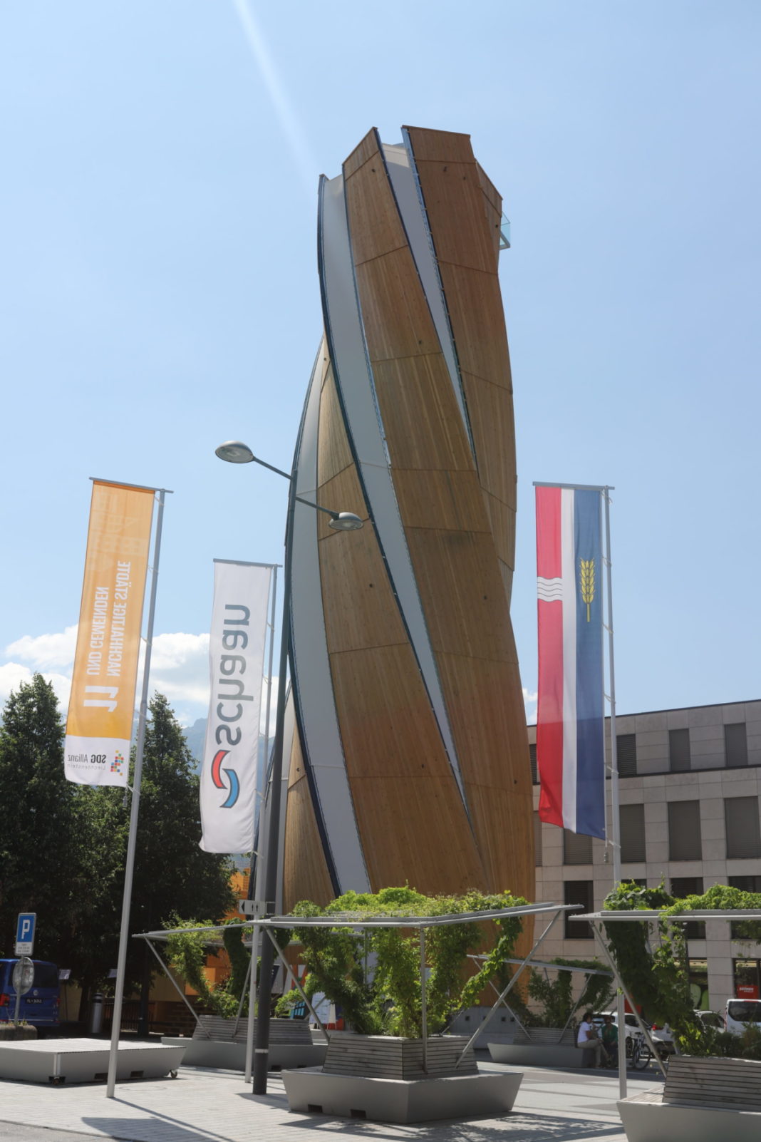 Der markante Holzturm mitten in Schaan mit der interaktiven Ausstellung «Ich, die Zukunft» zieht Kreise in und um Liechtenstein.