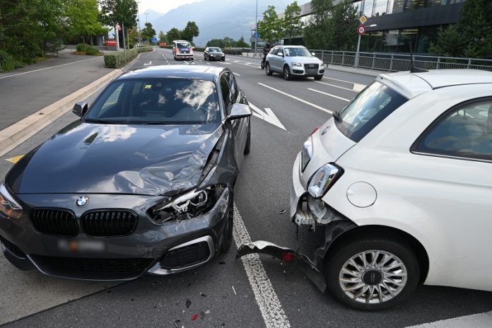 Am Montag (03.07.2023) fuhr in Schaan ein Automobilist gegen 18:20 Uhr auf der Feldkircher Strasse in nördliche Richtung. Als das Fahrzeug vor ihm verkehrsbedingt anhalten musste, kollidierte er trotz Vollbremsung mit diesem. Dabei wurde das vordere Fahrzeug gedreht und kam quer zur Fahrbahn zum Stillstand. Etwas später, gegen 19:00 Uhr, fuhr in Vaduz ein Fahrzeuglenker von der Neugass kommend links in die Landstrasse ein. Dabei stiess er mit einem vortrittsberechtigten Auto zusammen, das in südliche Richtung unterwegs war.